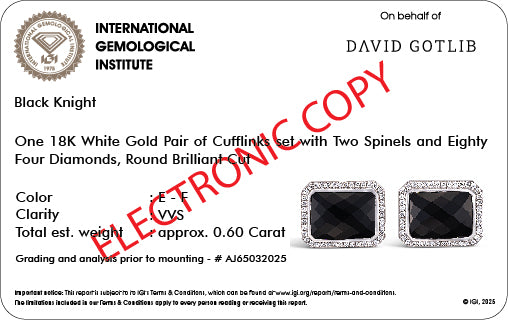 Every pair of cufflinks is delivered in our distinctive premium box, accompanied by its IGI certificate, ensuring unparalleled quality and authenticity.