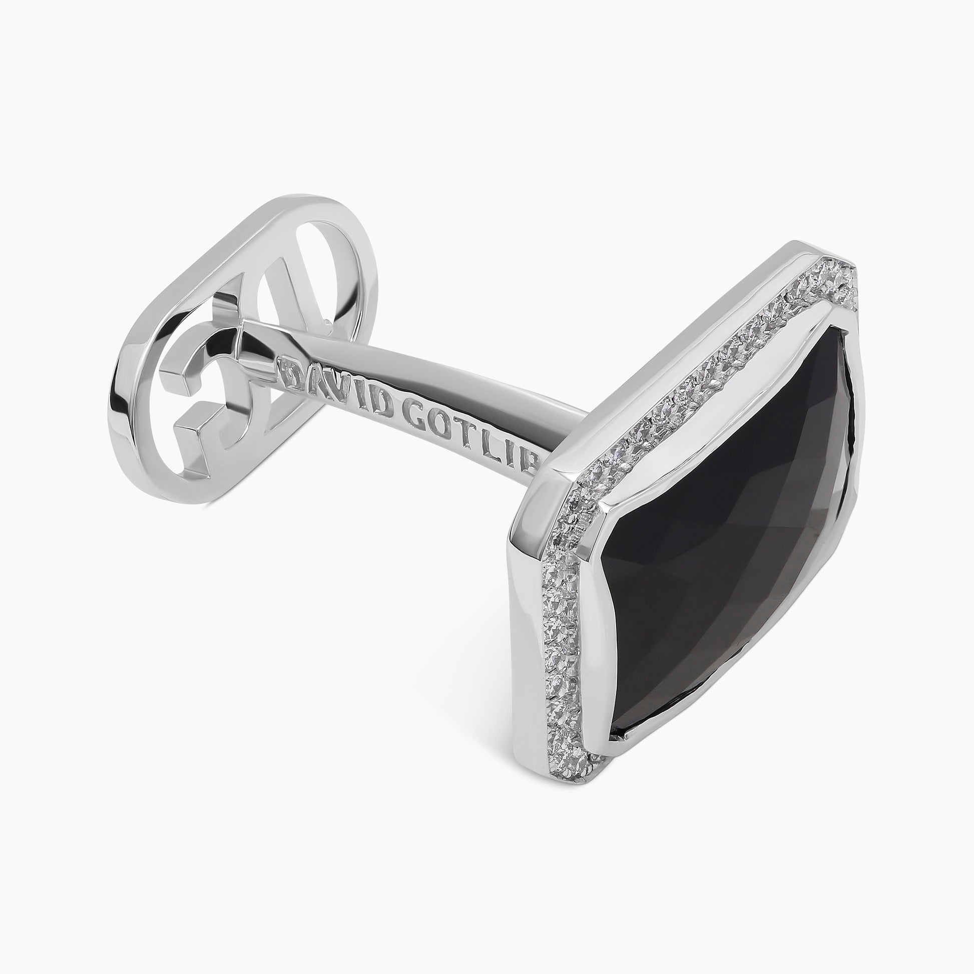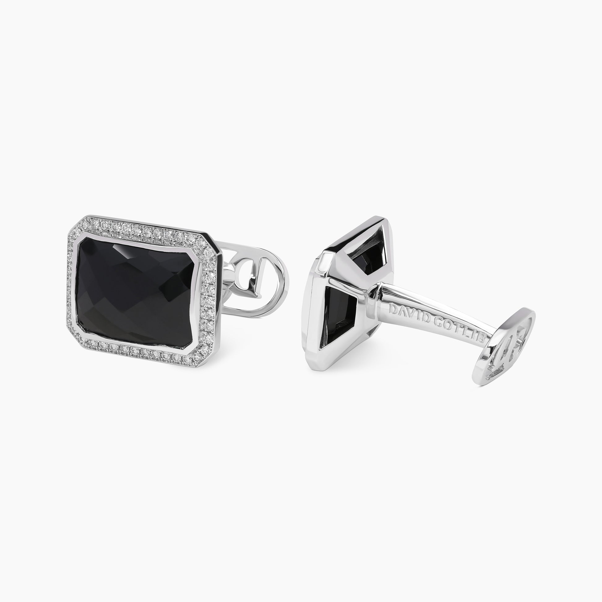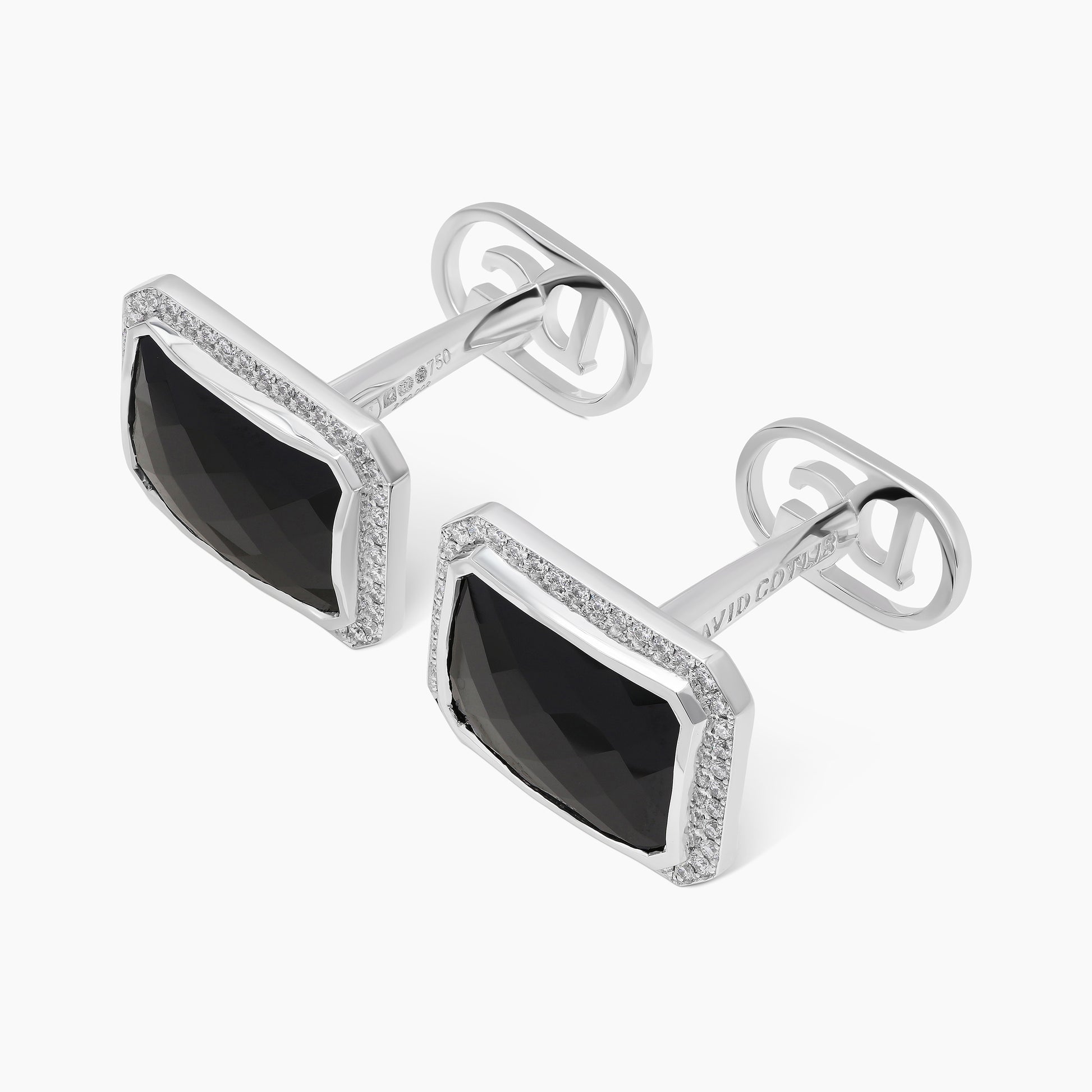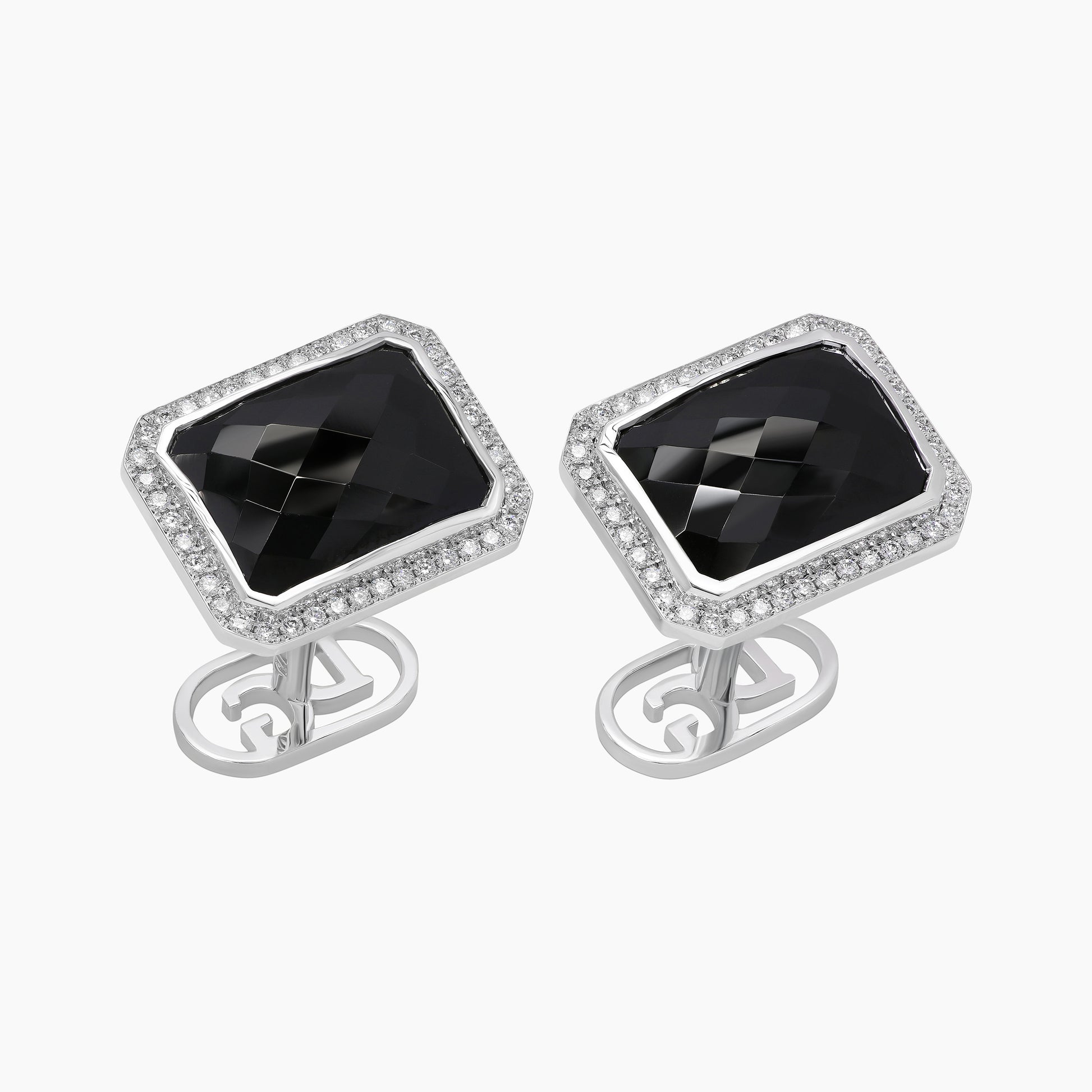 The striking black spinels at the heart of these cufflinks makes a bold and captivating statement, exquisitely framed by 84 round white diamonds. Crafted in 18k white gold, they effortlessly blend classic elegance with a contemporary edge.