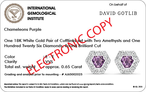 Every pair of cufflinks is delivered in our distinctive premium box, accompanied by its IGI certificate, ensuring unparalleled quality and authenticity.
