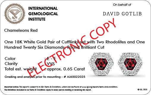 Every pair of cufflinks is delivered in our distinctive premium box, accompanied by its IGI certificate, ensuring unparalleled quality and authenticity.