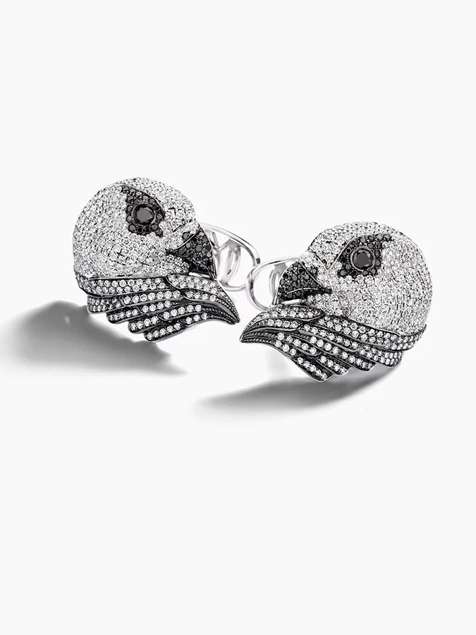 Set in 18k white gold 540 white diamonds and 68 black diamonds let this eagle soar to new heights with scintillating brilliance.