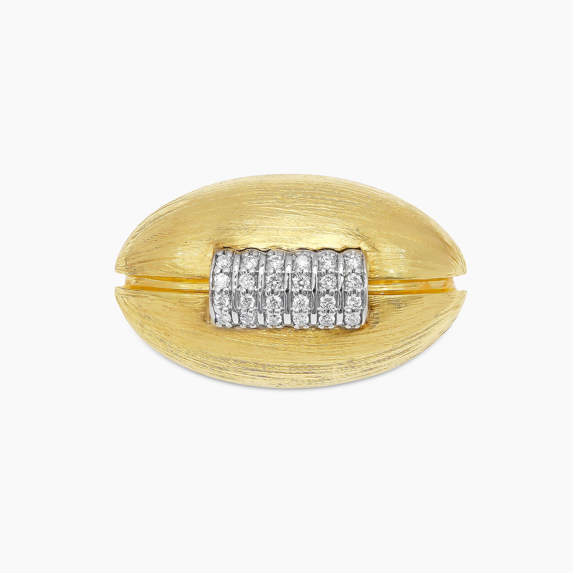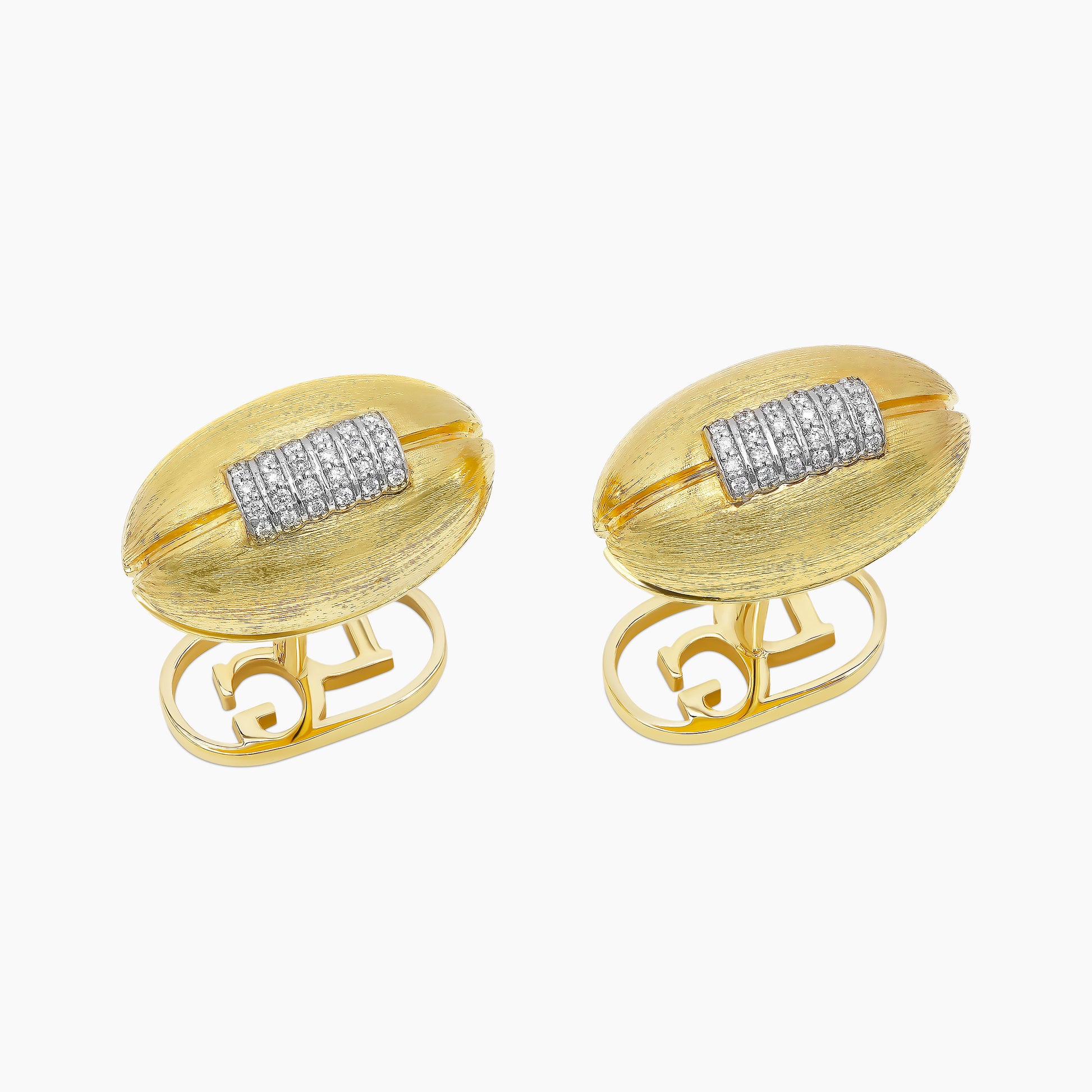 Cufflinks that embody the essence of American football. Sculpted in 18k yellow gold with DG's signature brushed texture, they showcase 48 round brilliant white diamonds, echoing the laces of the ball. A bold tribute to passion, precision, and the relentless pursuit of greatness.