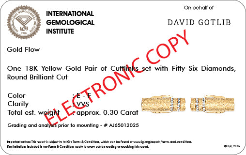 Every pair of cufflinks is delivered in our distinctive premium box, accompanied by its IGI certificate, ensuring unparalleled quality and authenticity.