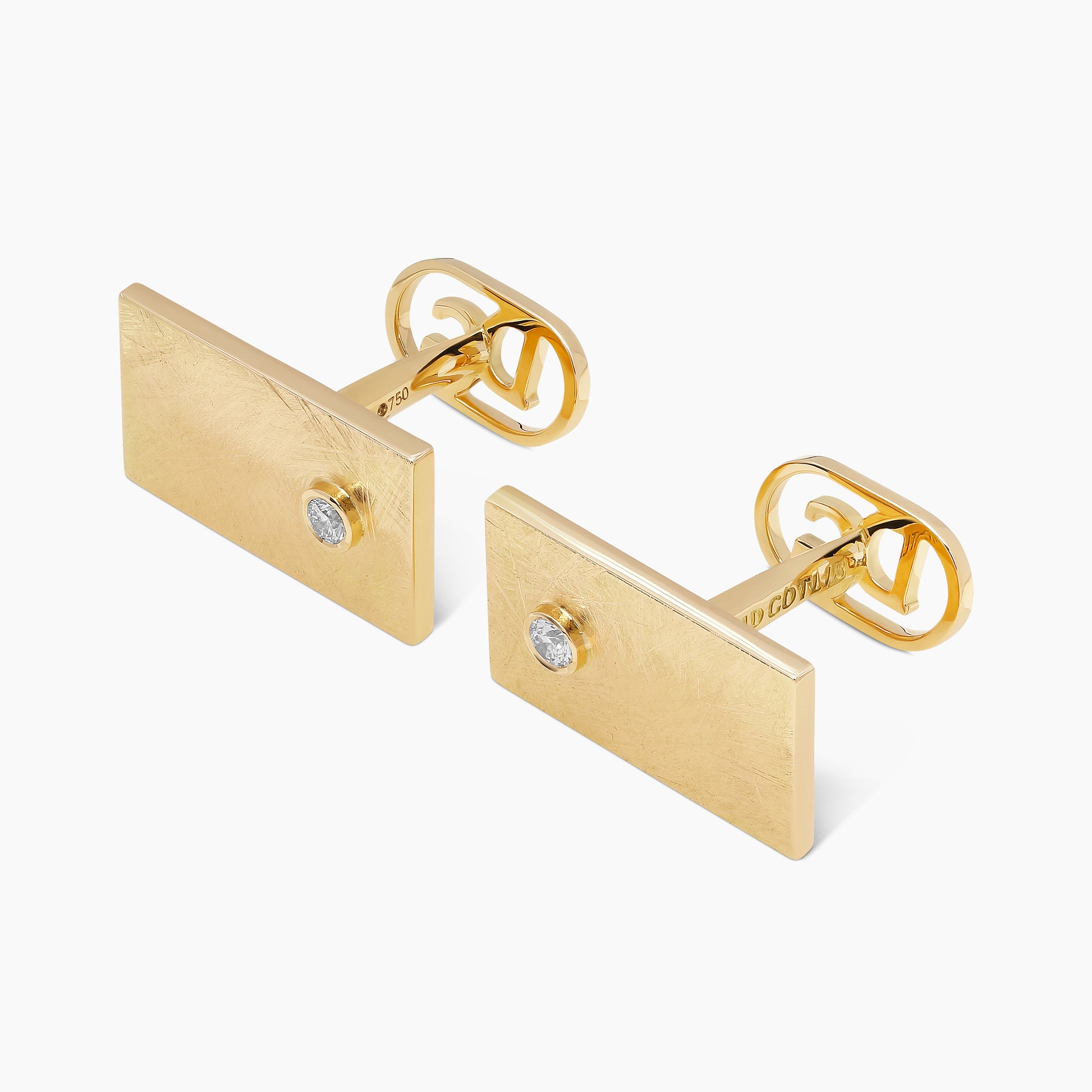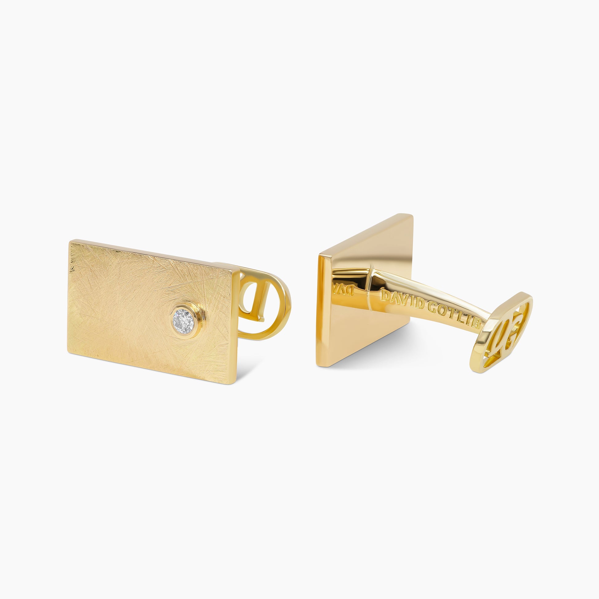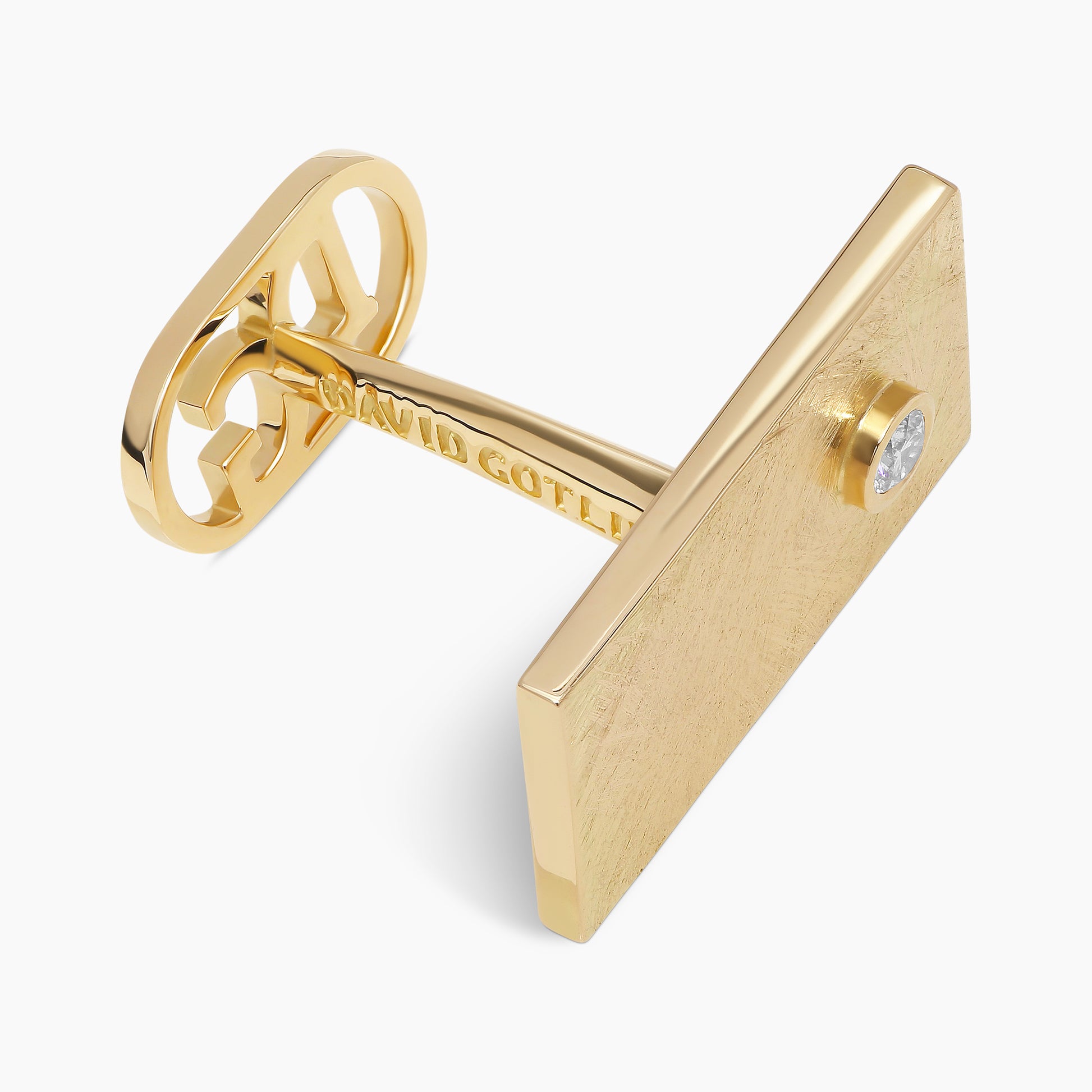 A redefined classic, these 18Kt gold cufflinks capture the essence of minimalism and timeless luxury with two bezel-set round brilliant diamonds shining against David Gotlib’s signature brushed backdrop.