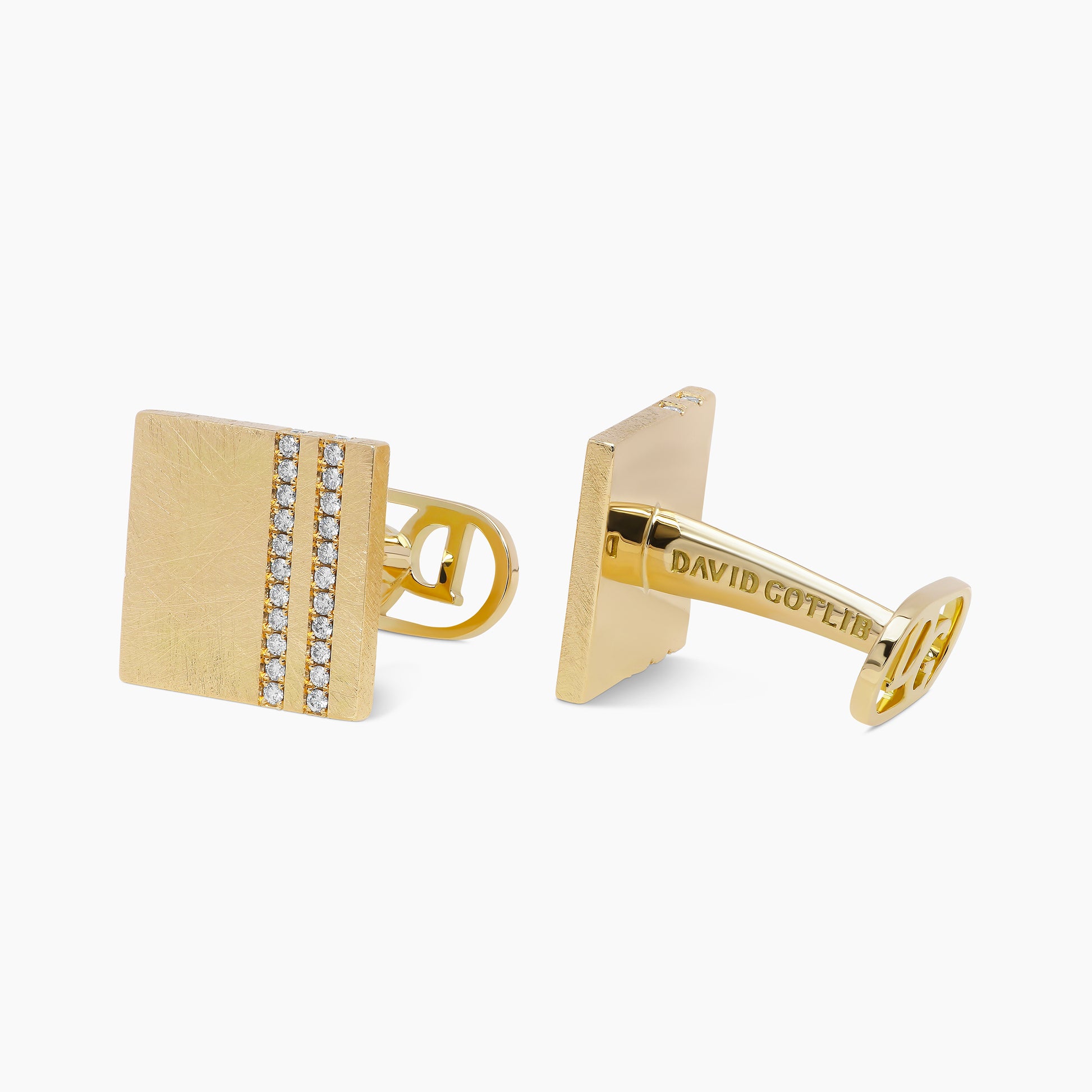 Straightforward and distinctively sleek, these cufflinks showcase the brilliance of 52 perfectly hand-set diamonds, paired with solid 18k gold. The simple elegance of their geometric shape is enhanced by David Gotlib’s signature brushed texture, allowing its rich patina to develop beautifully over time.