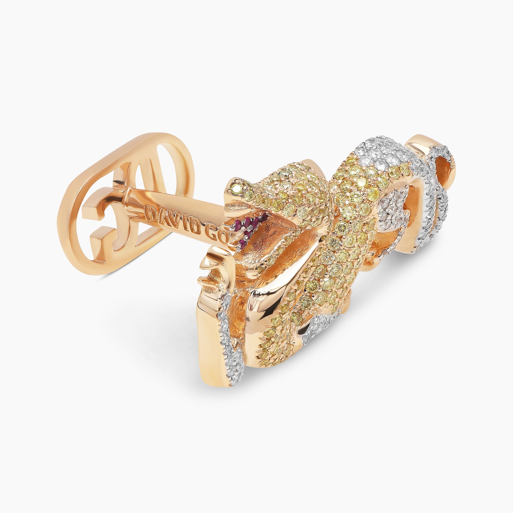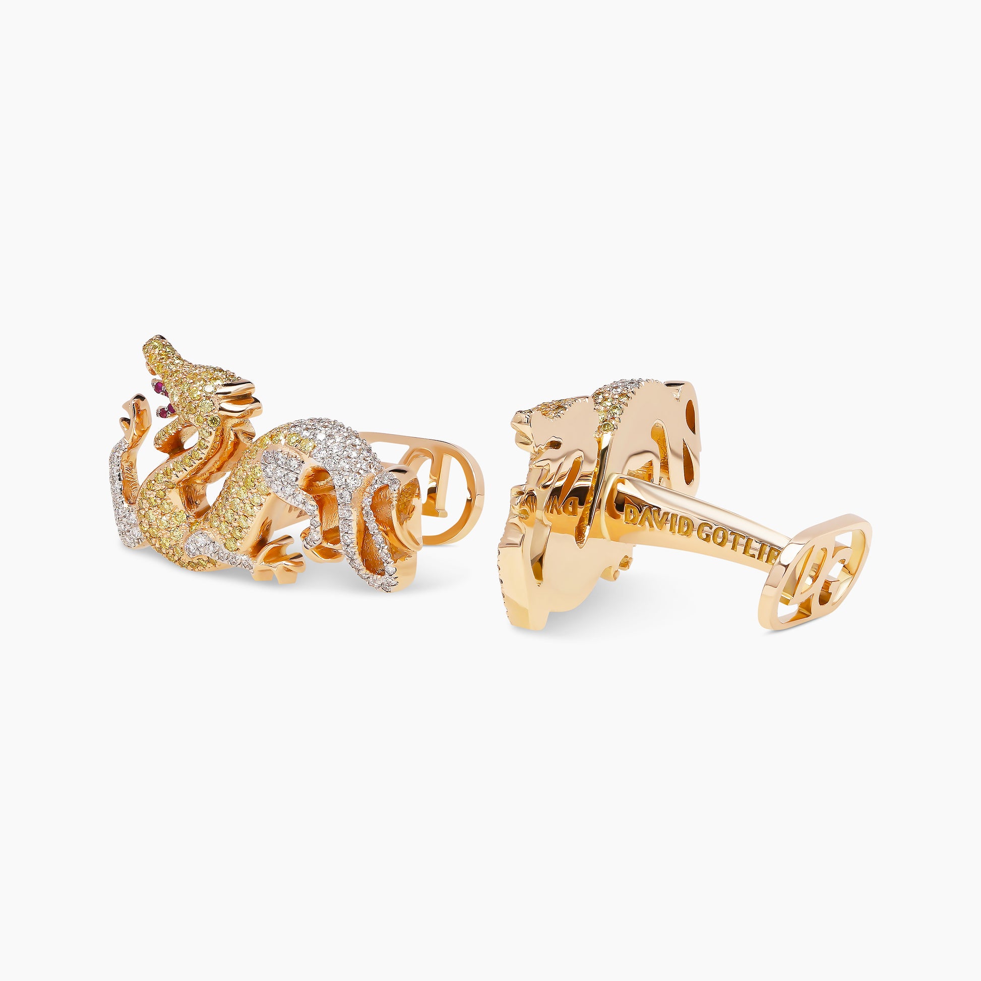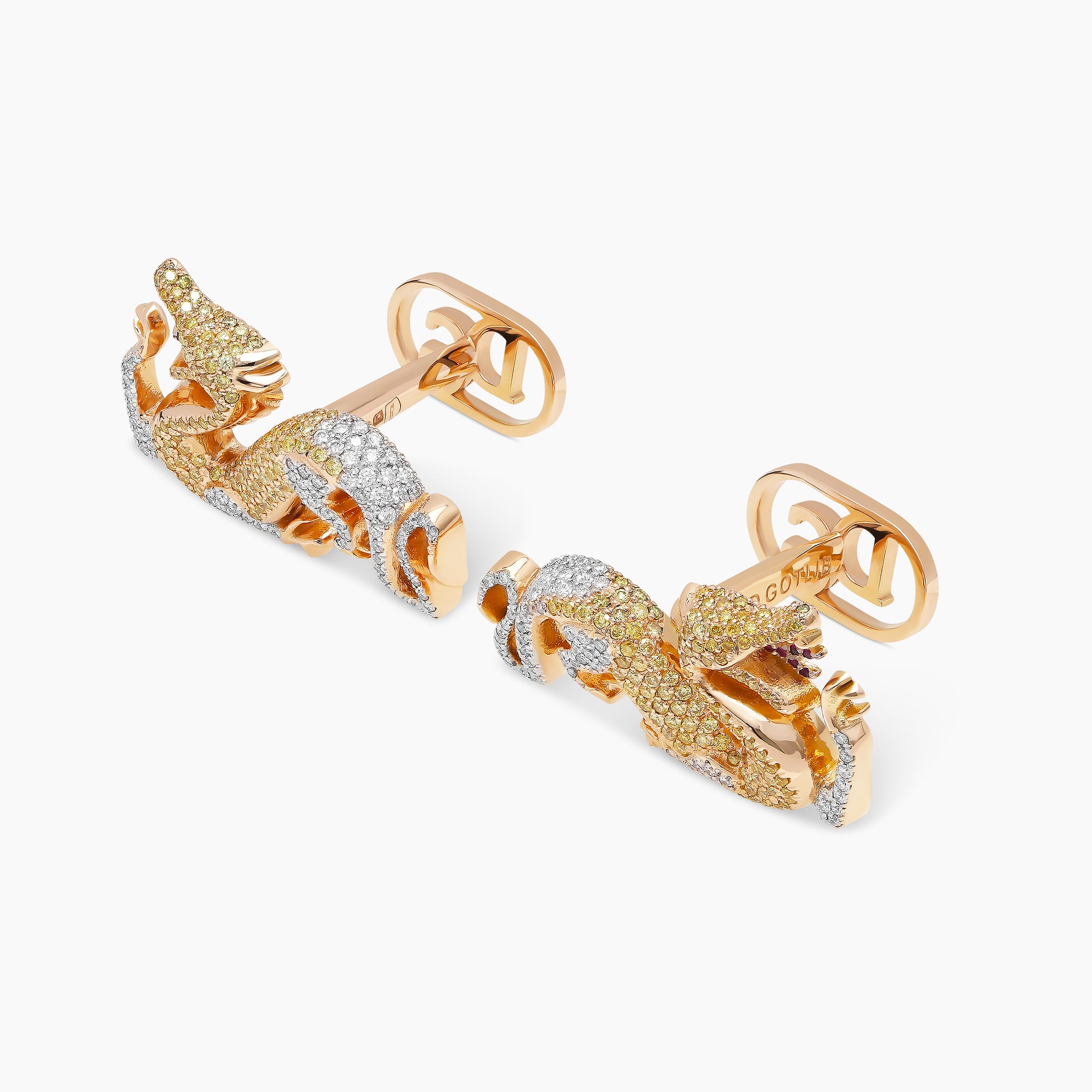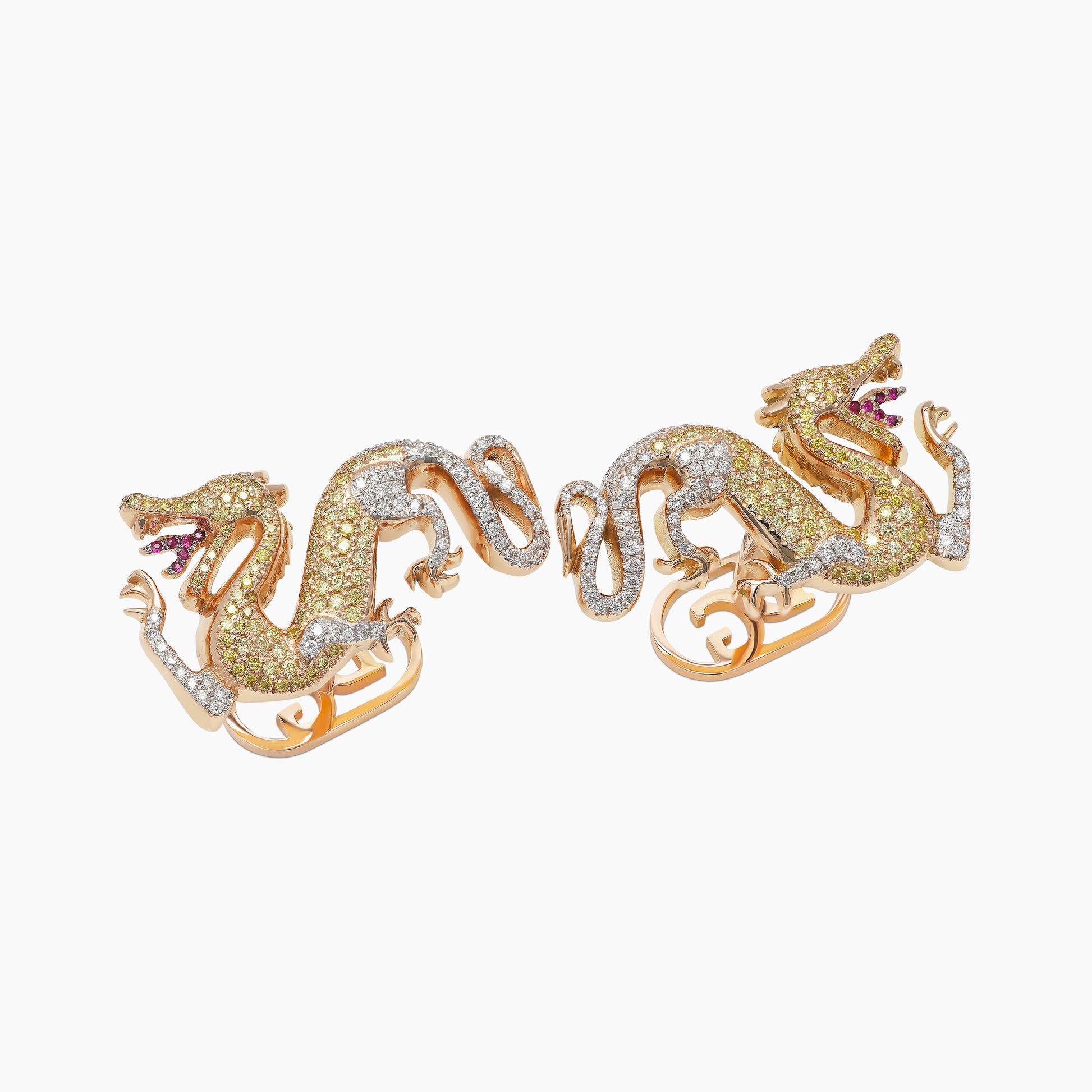 A tribute to wisdom, strength, and fortune, these legendary dragons embody confidence and a trailblazing spirit. Crafted in 18k yellow gold, this pair of cufflinks dazzles with 128 brilliant round white diamonds, 298 round fancy yellow diamonds, and 34 fiery rubies—honoring tradition while celebrating individuality.