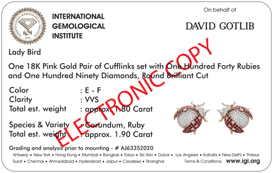 Every pair of cufflinks is delivered in our distinctive premium box, accompanied by its IGI certificate, ensuring unparalleled quality and authenticity.