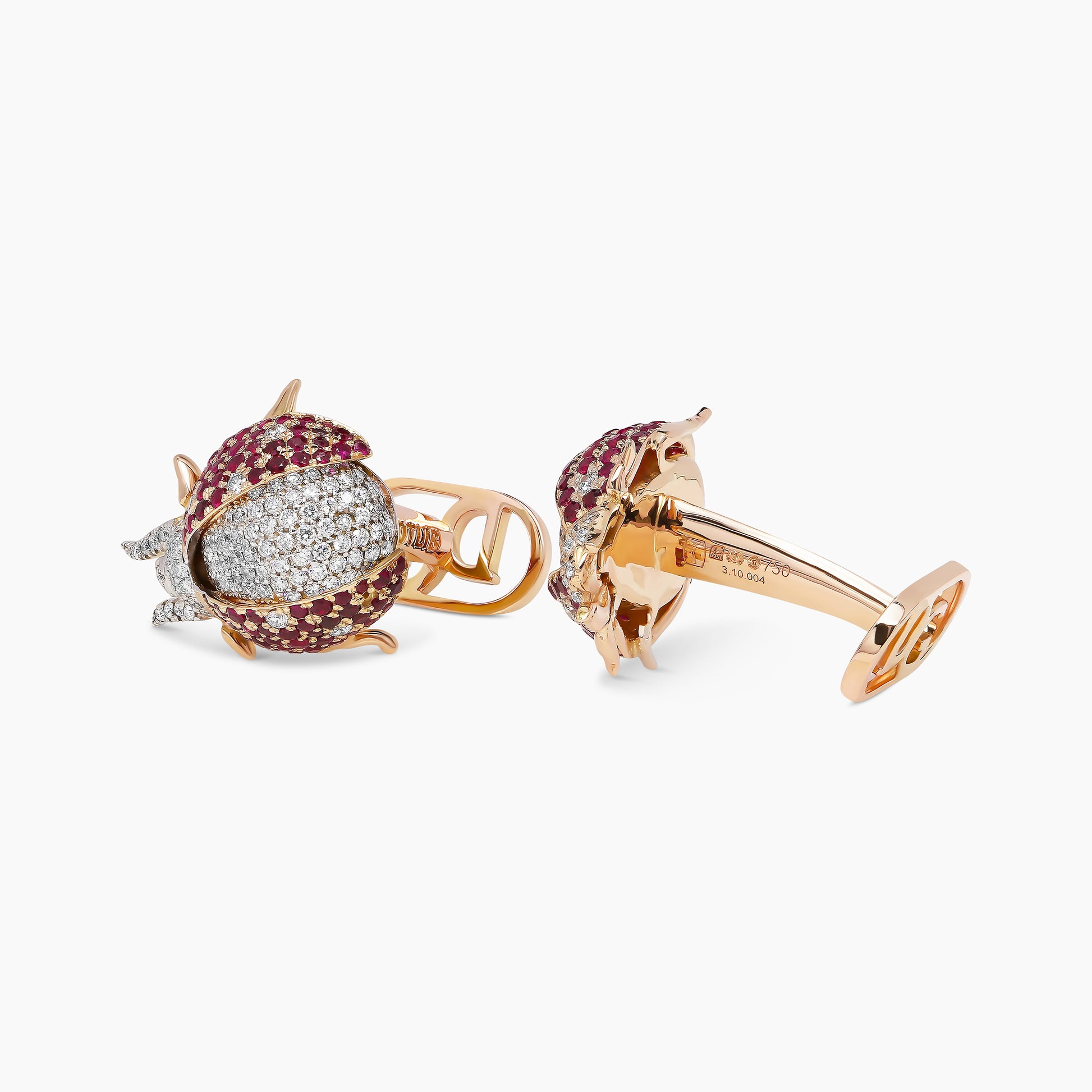 The ladybird has long been a beacon of positive transformation and new beginnings. With its mystical charm, it’s said that letting a ladybird land on you invites a touch of extraordinary luck. Crafted in 18k pink gold, these cufflinks feature 190 round brilliant white diamonds and 140 vivid rubies, their vibrant hues perfectly accentuating the wings of this iconic symbol.
