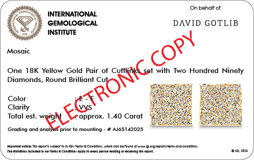 Every pair of cufflinks is delivered in our distinctive premium box, accompanied by its IGI certificate, ensuring unparalleled quality and authenticity.